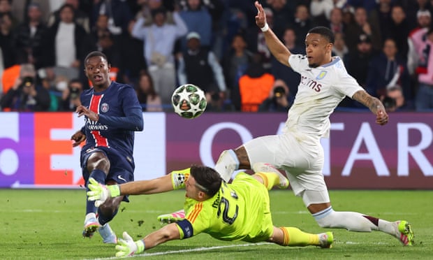 From there PSG assumed control. Martínez made a superb save to thwart Dembélé and the goalkeeper then smothered when Achraf Hakimi made tracks towards the byline. Vitinha sent a shot over. Kvaratskhelia was too hot to handle and Villa shifted to a 5-4-1 out of possession to soak up pressure. PSG appeared comfortable so it was a shock when Villa seized the lead in the 35th minute. Until that point Villa had 23% of possession and their sole shot – from their captain, John McGinn – billowed into the stands.